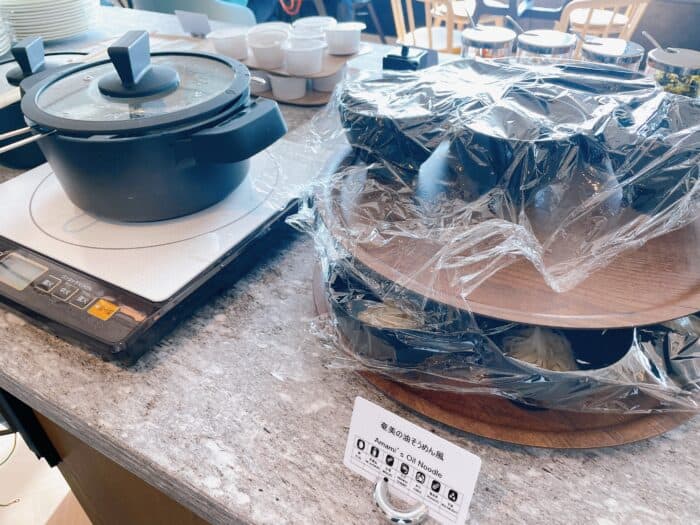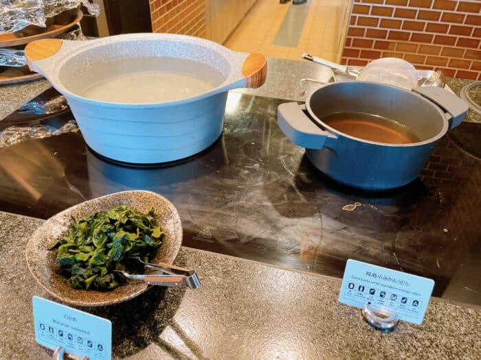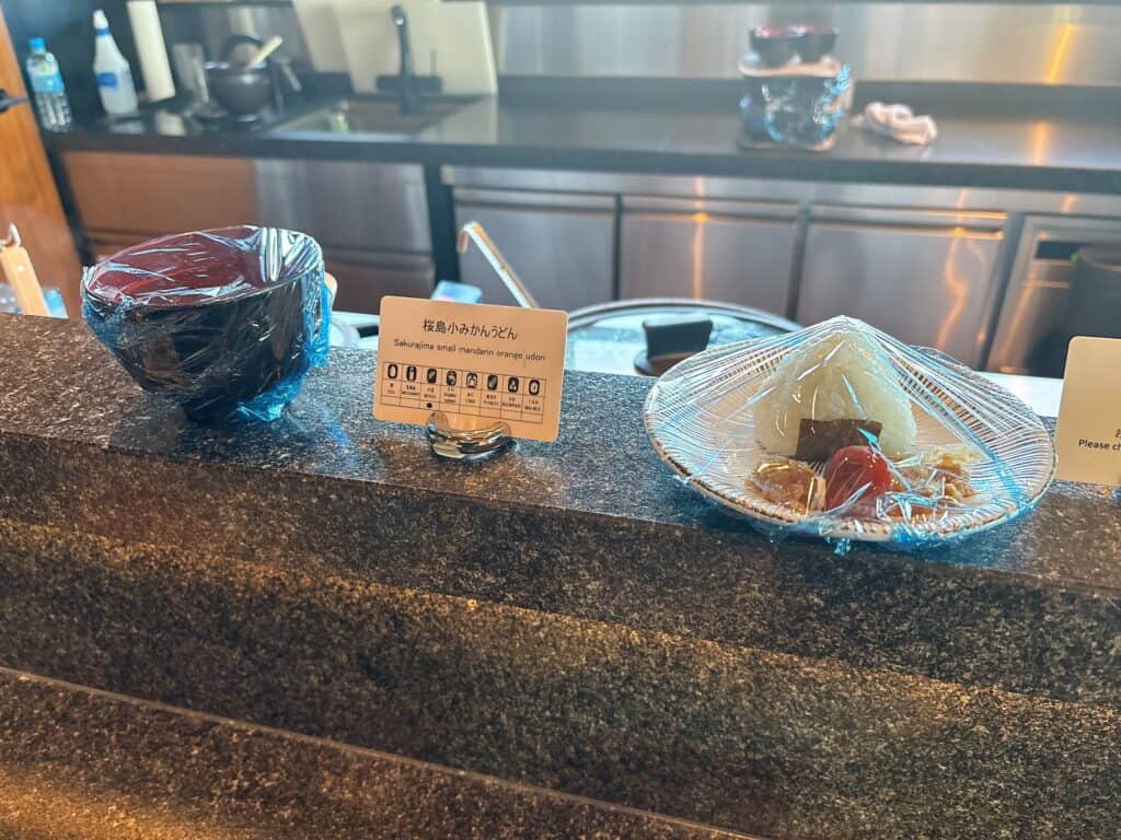 ヌードルバーでは、桜島こみかんをダシに使ったうどんが提供されていました。