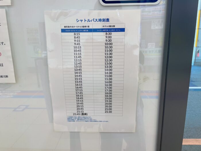 ですが、ホテルから鹿児島中央駅までは30分間隔で無料のシャトルバス送迎があるので積極的に活用してください。
