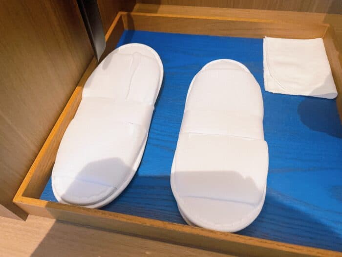 もう少し厚みのあるスリッパを用意してほしいところ。