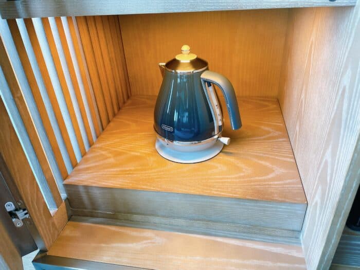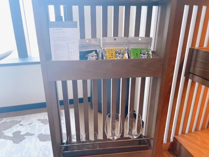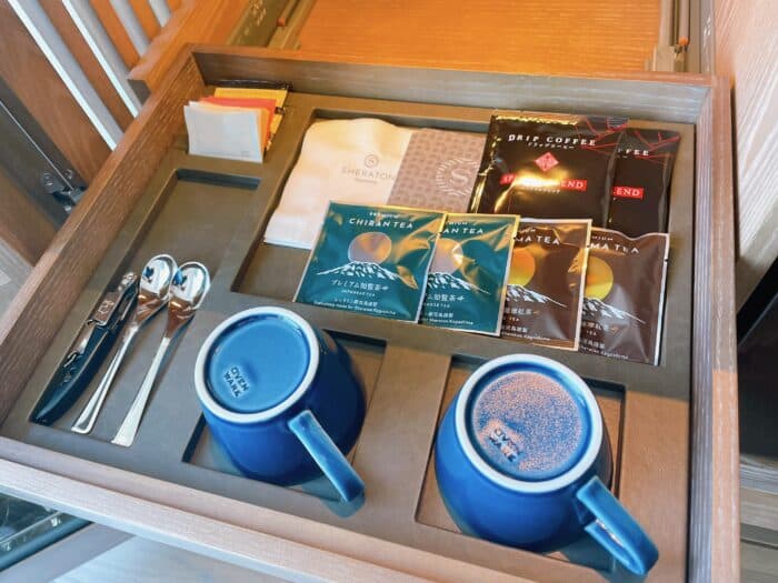 引き出しを開けるとコーヒーやシェラトン鹿児島オリジナルの緑茶・ほうじ茶パックが置かれていました。