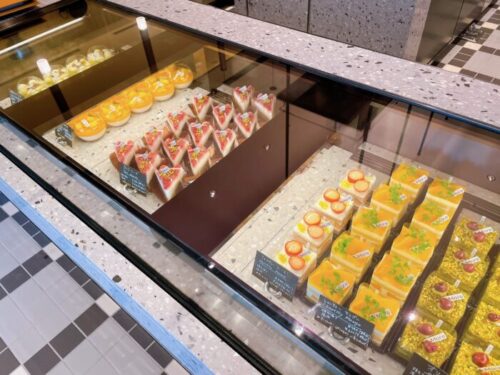 冷蔵ケースの中には様々なバリエーションのデザートが陳列しています。