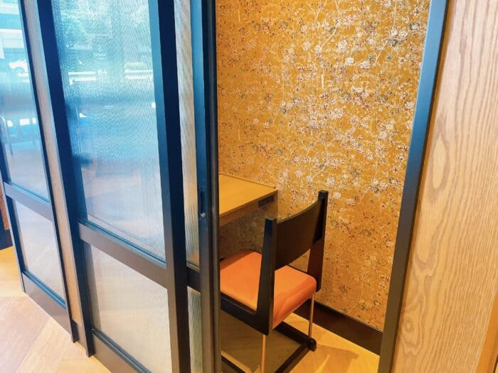 完全個室にできるの作業スペース(コンセント付)もあり、集中して作業をしたいビジネスマンの方に重宝しそう。
