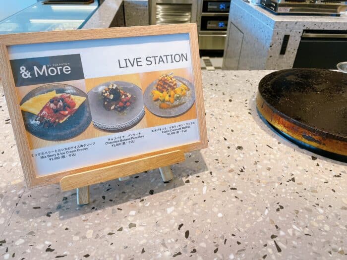 目の前でクレープやワッフルを焼いて提供するスイーツもあります。