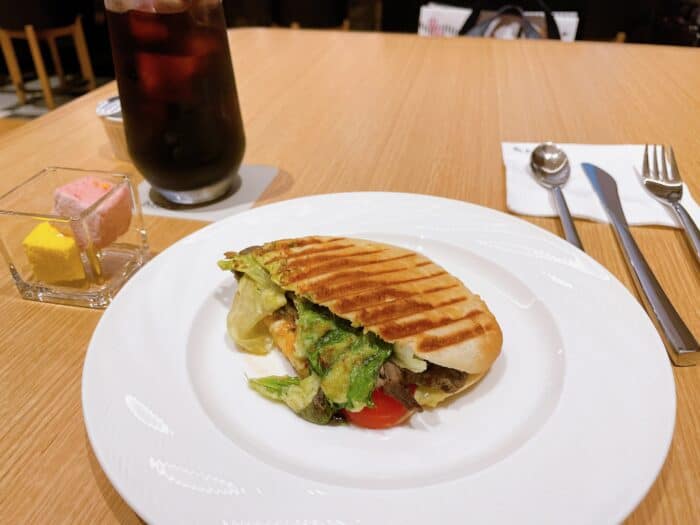 今回はローストビーフが挟まったパニーニ(1,200円)を注文。
