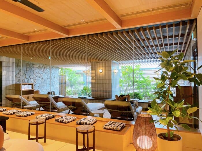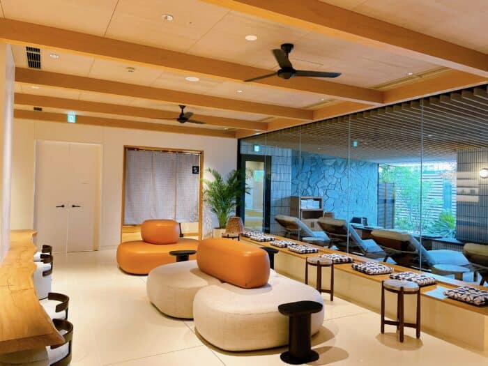 湯上がり処には、足湯エリアやデイベッドが用意さえており、のんびりとした時間を過ごせます。