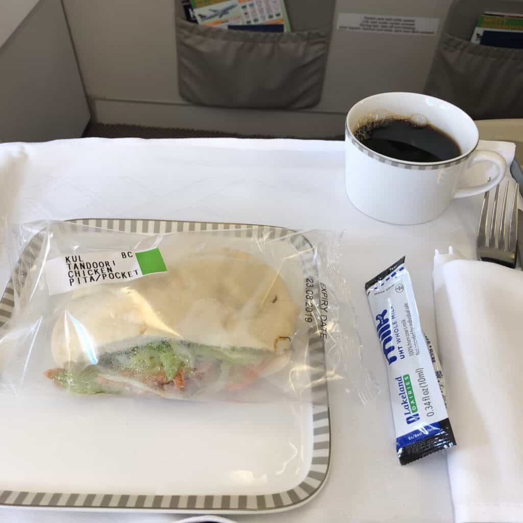 クアラルンプール⇄シンガポール路線のビジネスクラスの機内食。