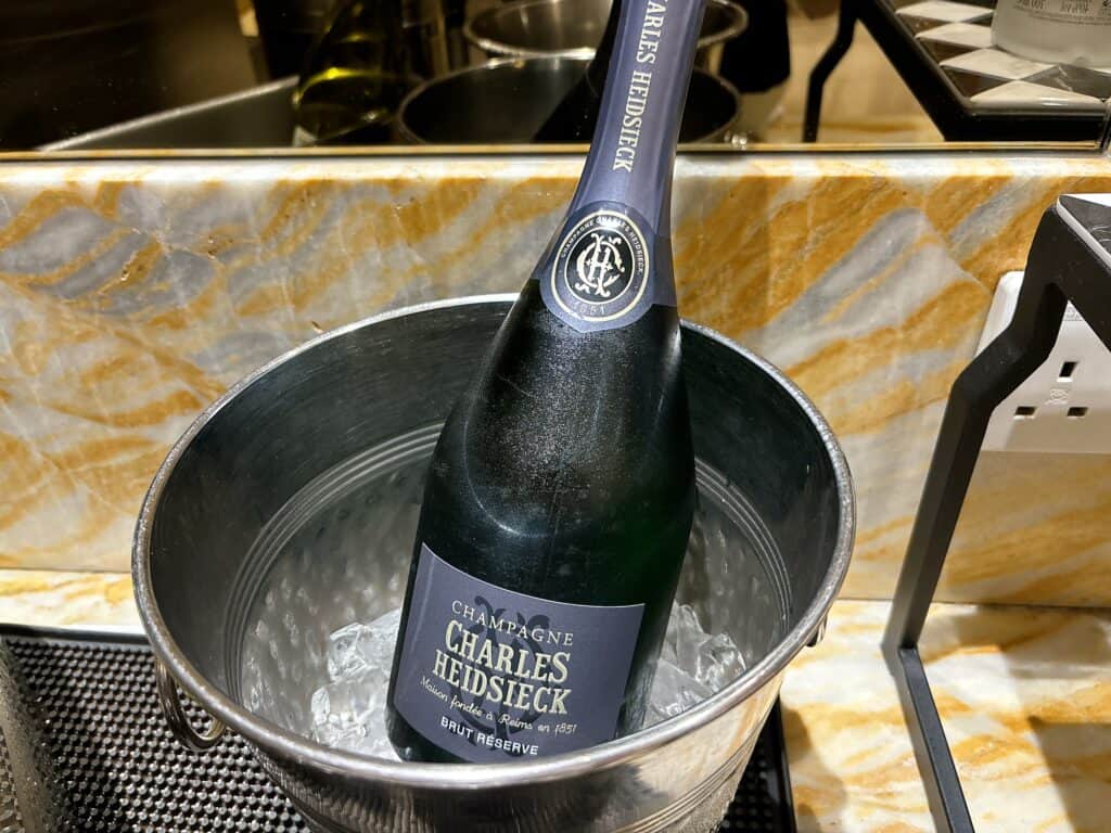 さらにビジネスクラスラウンジにもかかわらず、日本でおよそ9,000円程度する高級シャンパン「シャルル・ヘドシック」が用意されていました。