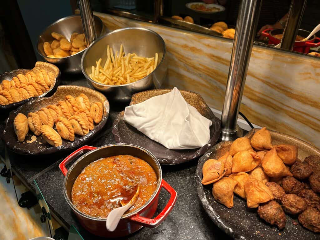インド系の揚げ物料理に加えてフライドポテトやチキンナゲットなど小さいお子さんが喜びそうなメニューも用意されています。