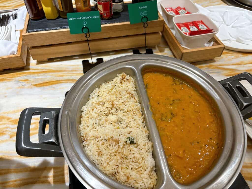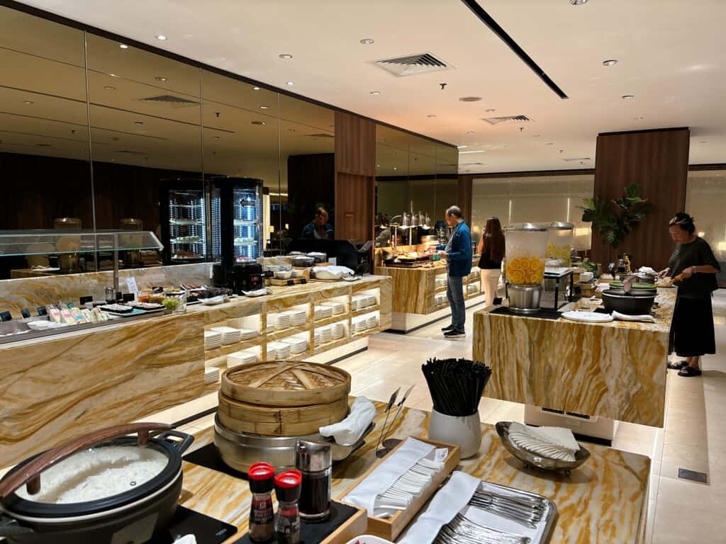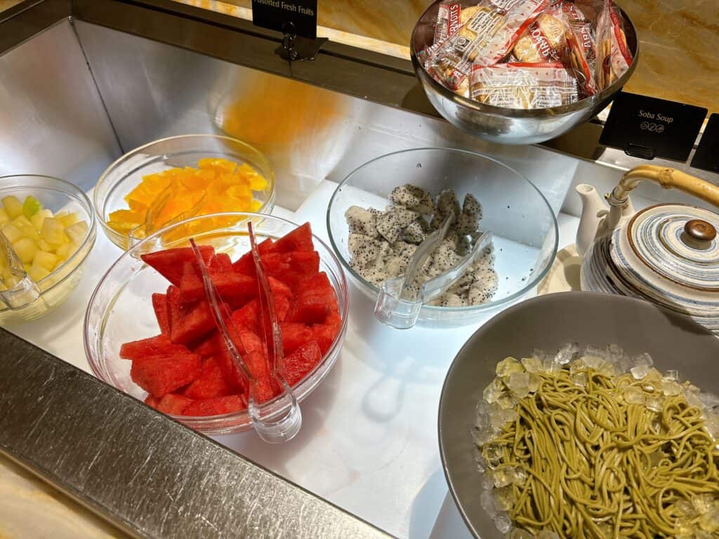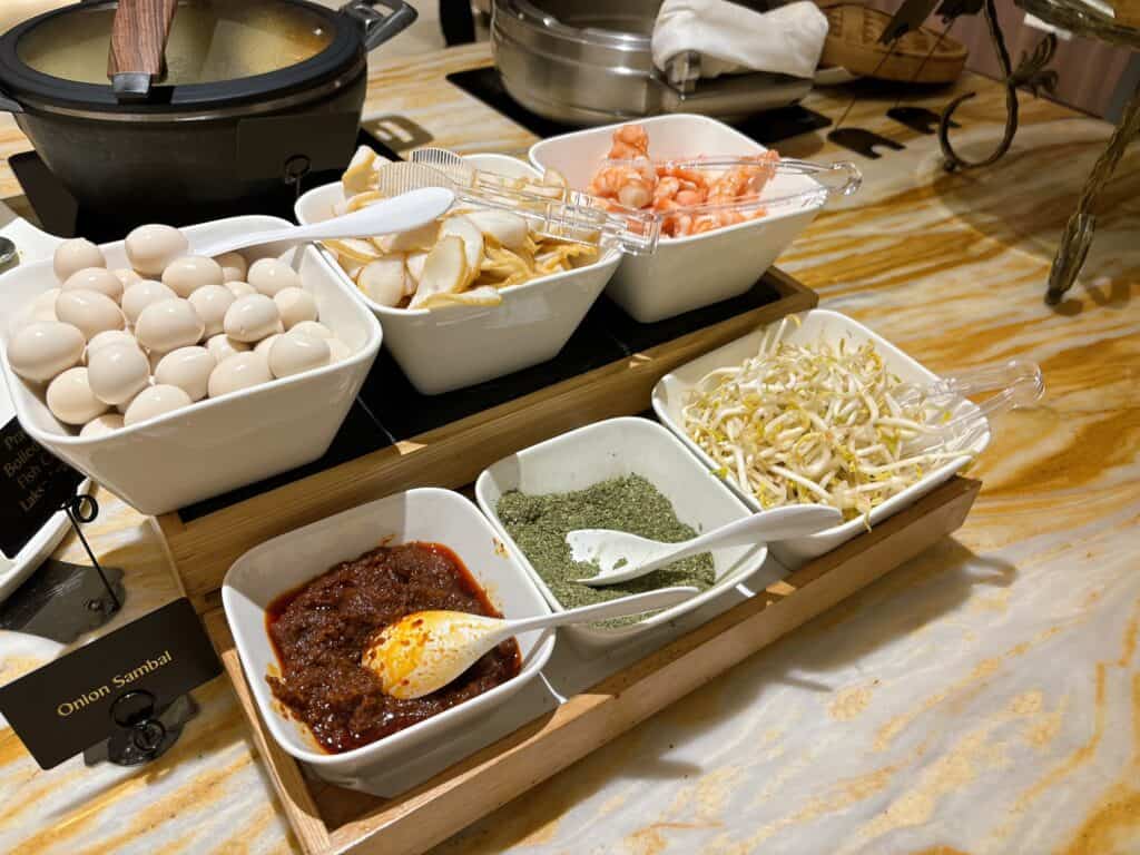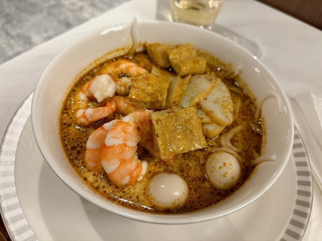 シンガポールラクサは私がラウンジを訪問した時間帯はピークの時間帯を過ぎていたので、ビュッフェの台に置かれていました。時間帯によってはスタッフの方が目の前で調理したラクサを提供してくれるそうですよ。