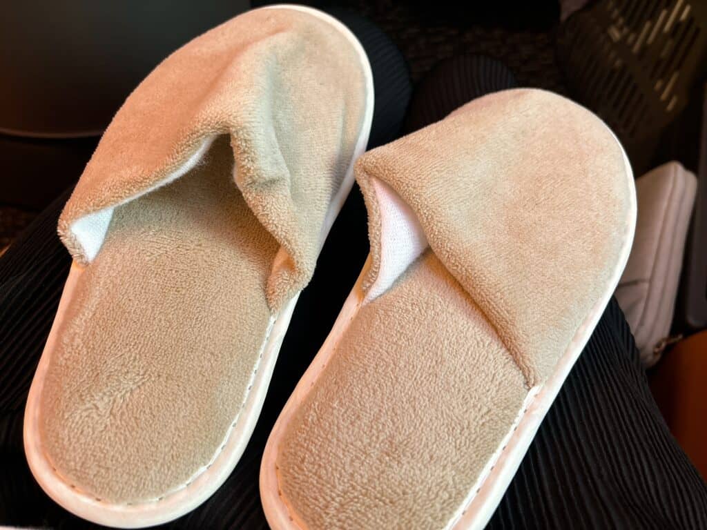 スリッパはエアラインのビジネスクラスで提供されるものとは思えないほどふかふかした品質の良いタイプ。