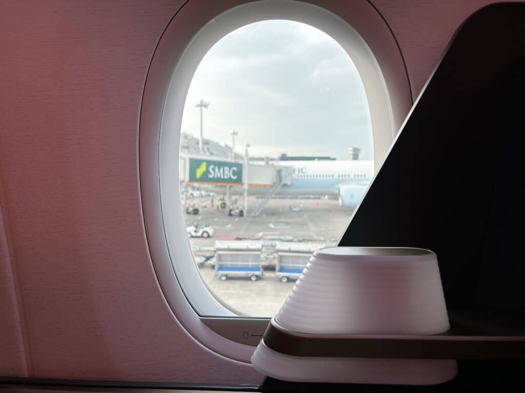 ビジネスクラスに搭乗したら撮影するお決まりの1枚。