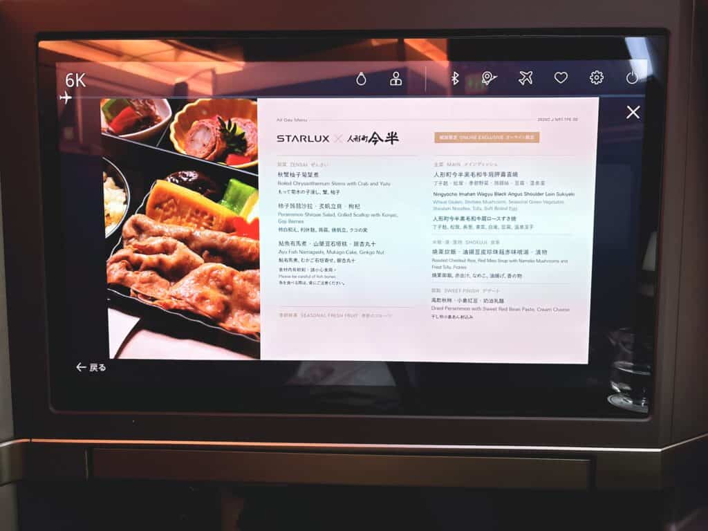 スターラックス航空ビジネスクラスの機内食
