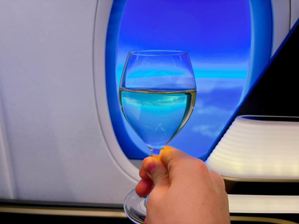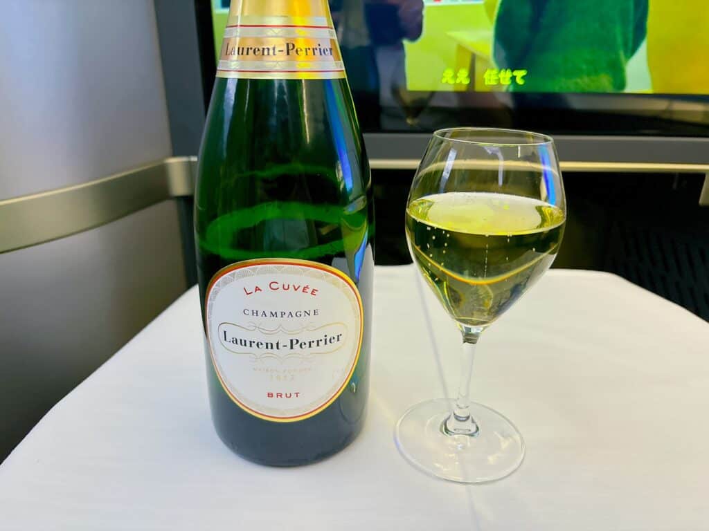 エアラインのグラスでは珍しいバブル型のシャンパングラスで提供されます。