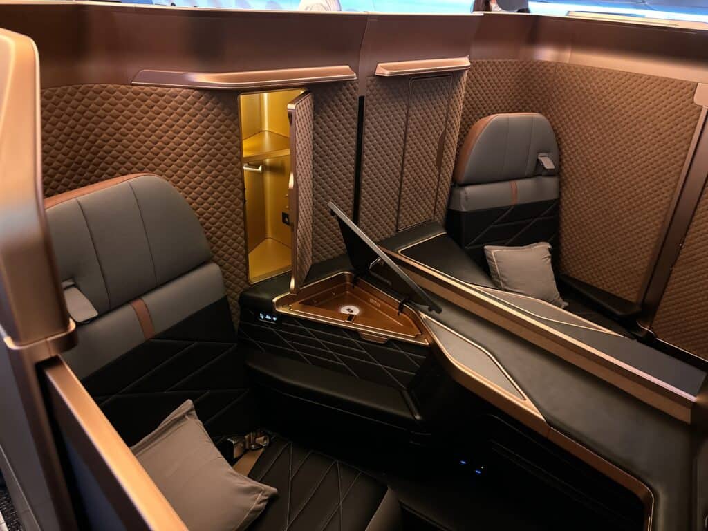 エミレーツ航空のB777に搭載されているファーストクラスのように、部屋のような空間です。