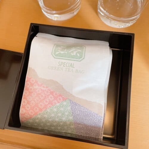 お茶は煎茶とほうじ茶のティーバッグが一つずつ入っていました。