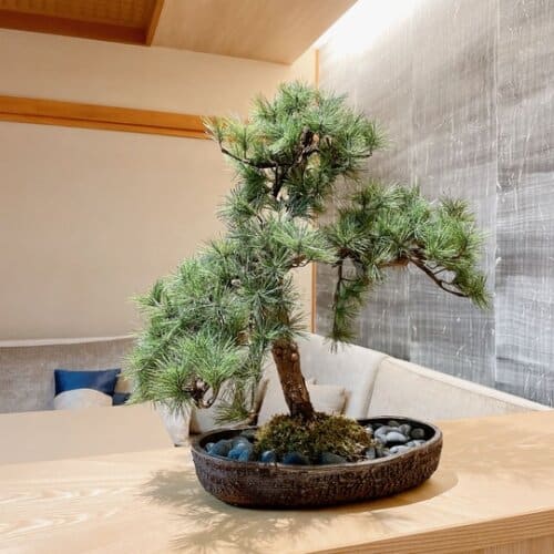 ソファ横に置いてある盆栽も空間に溶け込んでいてオシャレ。