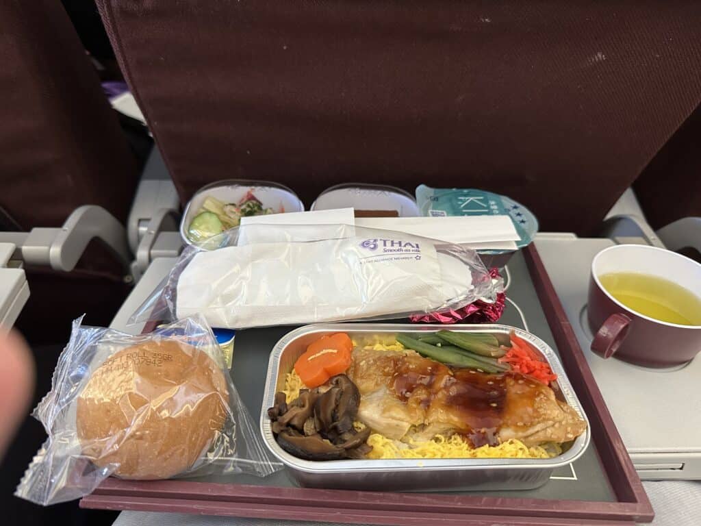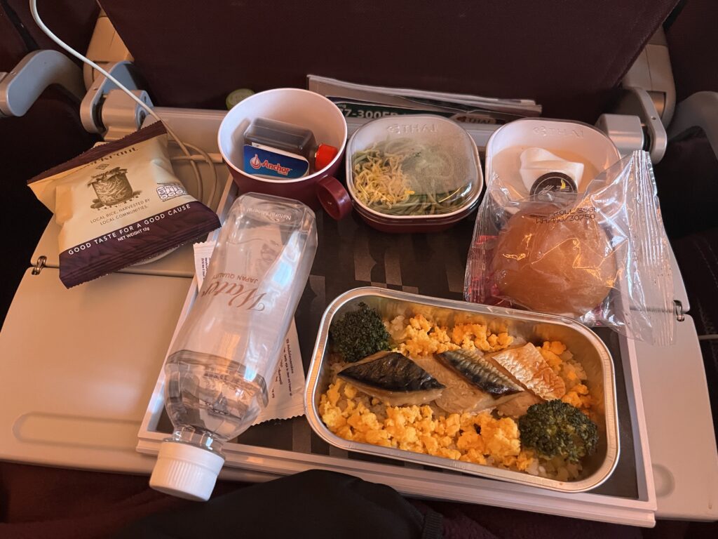 タイ国際航空の日中便を利用すると、タイ料理(タイカレーなど)もしくは和食どちらかを選択できます。