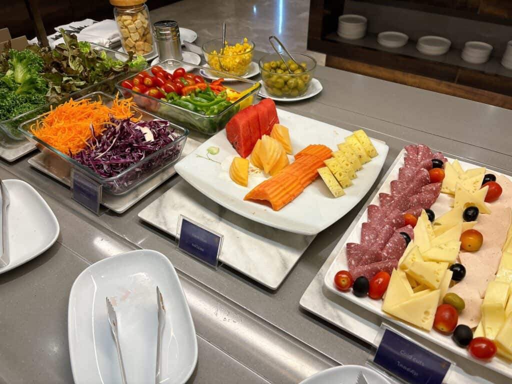 サラダ&フルーツ&チーズ・ハムコーナー。