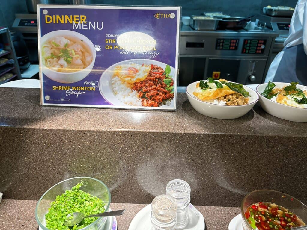キッチンコーナーでは出来立てのガパオライスもしくはワンタンスープを注文できます。