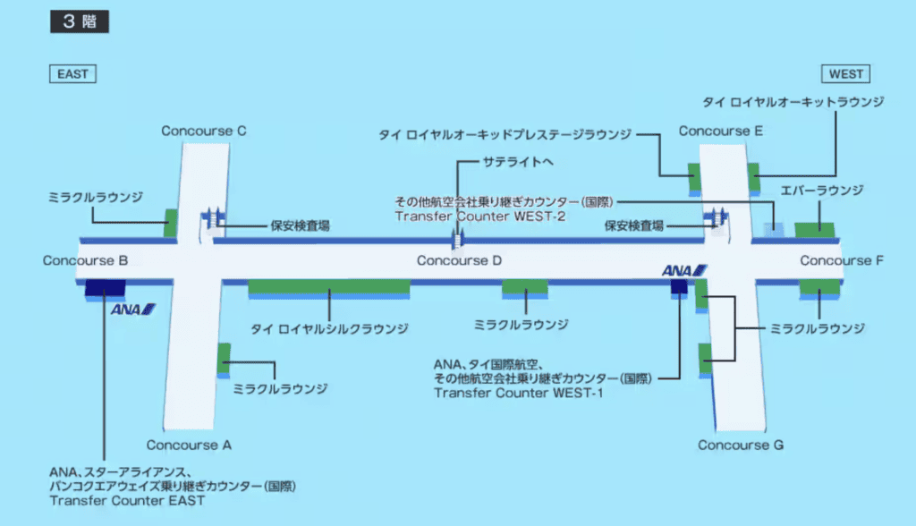 ロイヤルオーキッドラウンジ・プレステージの場所はコンコースE付近にあります。