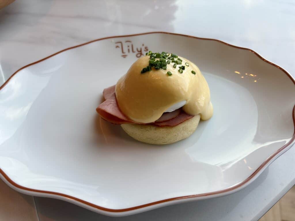 LiLy`sシグネチャーメニューのタイティーワッフル、タイマンゴーを添えて。