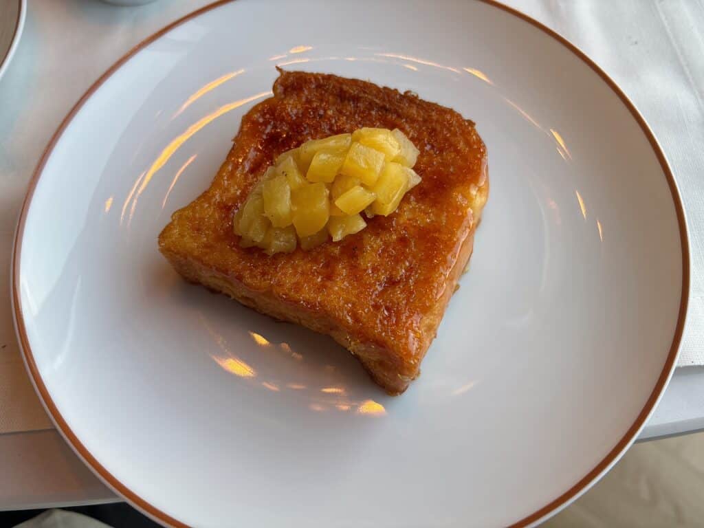パンの表面がブリュレされ、パイナップルのコンポートがのった一品。