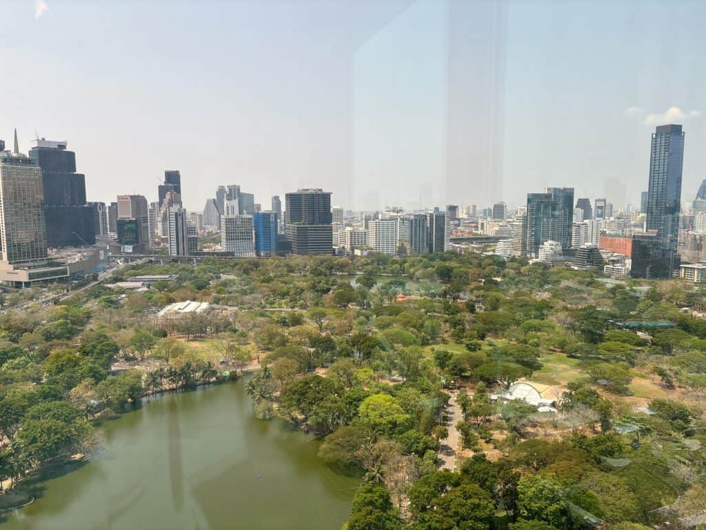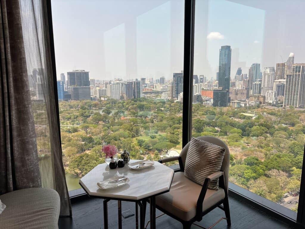 2面の窓ガラスからはルンピニー公園とスクンビット方面の高層ビル群の眺望を同時に楽しめます。