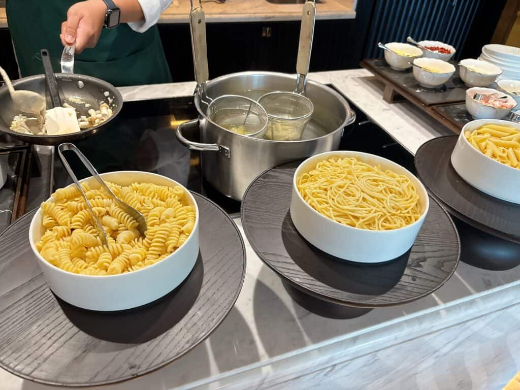 ランチタイムは利用した3日間ともライブキッチンコーナーでパスタが提供されていました。