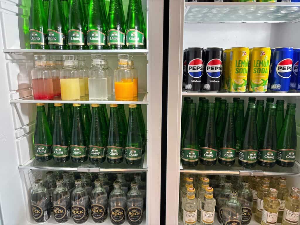 冷蔵庫の中を開けると、マリオット系列のクラブラウンジでおなじみのペプシなど、ソフトドリンクが冷蔵されています。
