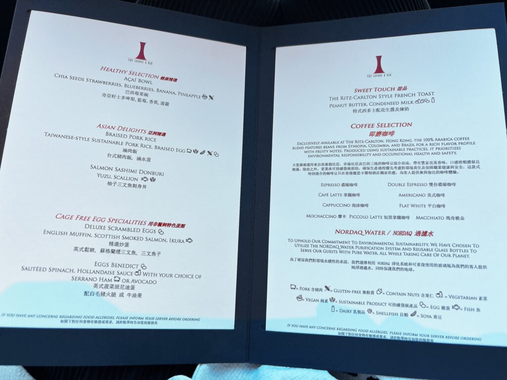 リッツカールトン香港の朝食の基本情報は以下の通りです。