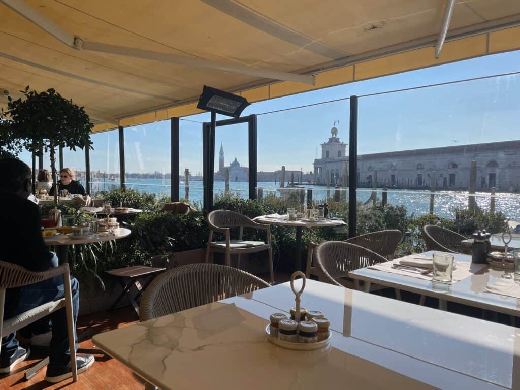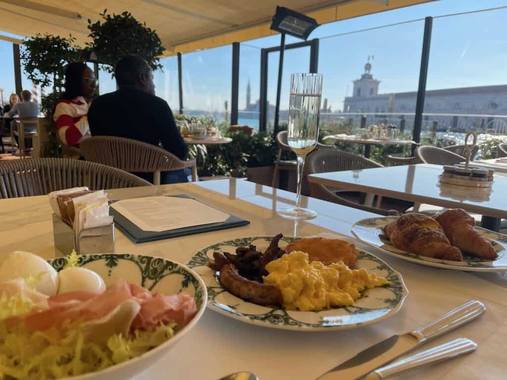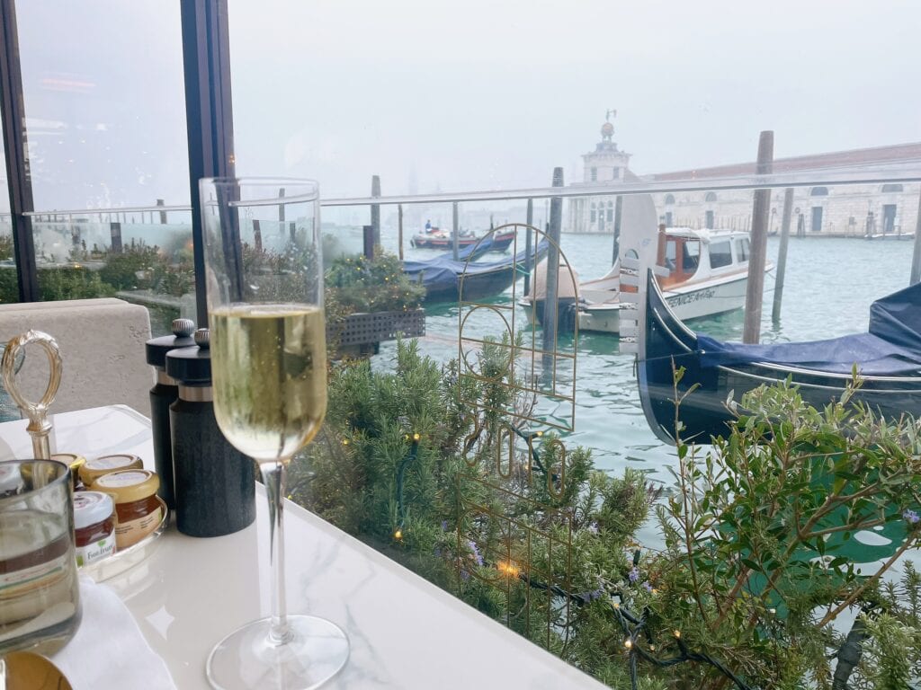 ヴェネチアの素晴らしい景色を楽しみながらシャンパンブレックファーストを楽しむ。