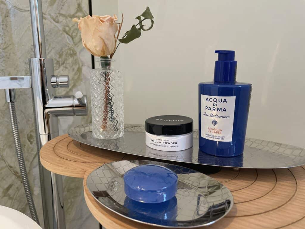 バスアメニティはセントレジス共通のremede(ルメードゥ)だと思っていたのですが、セントレジスベニスでは、イタリアのフレグランスブランド、ACQUA DI PARMA(アクアディパルマ)が用意されていました。