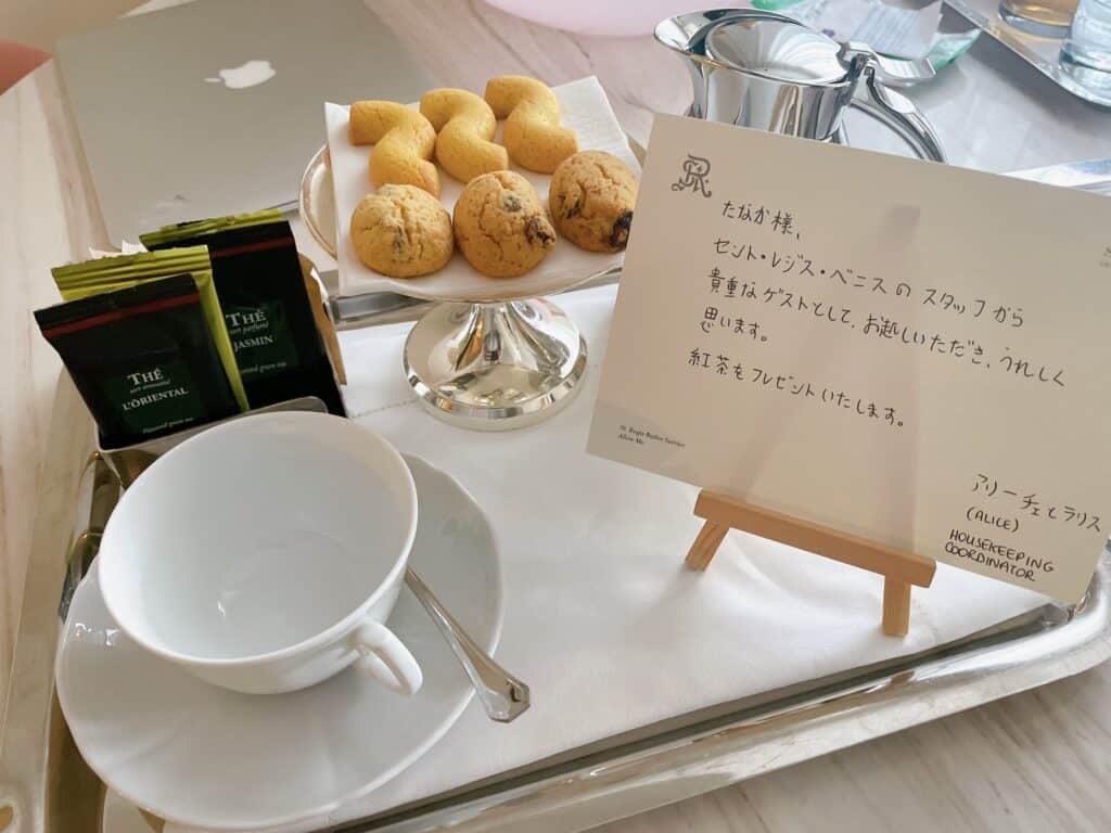 翌日には紅茶とベネチア名物の波型のクッキーのサプライズも。
