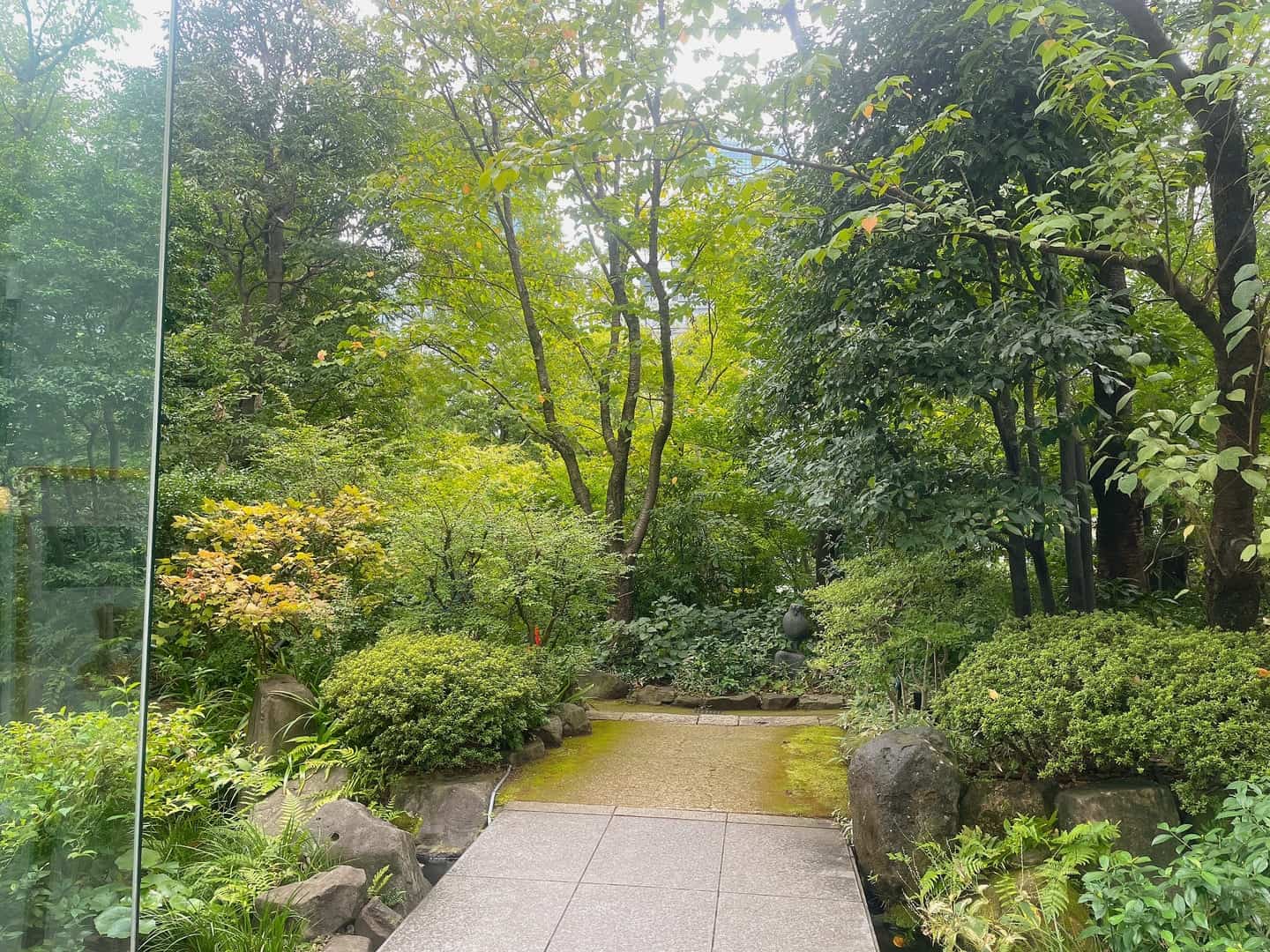 窓を見渡すと、梅田スカイビルに隣接する「中自然の森」があり、自然豊かな景色も楽しめます。