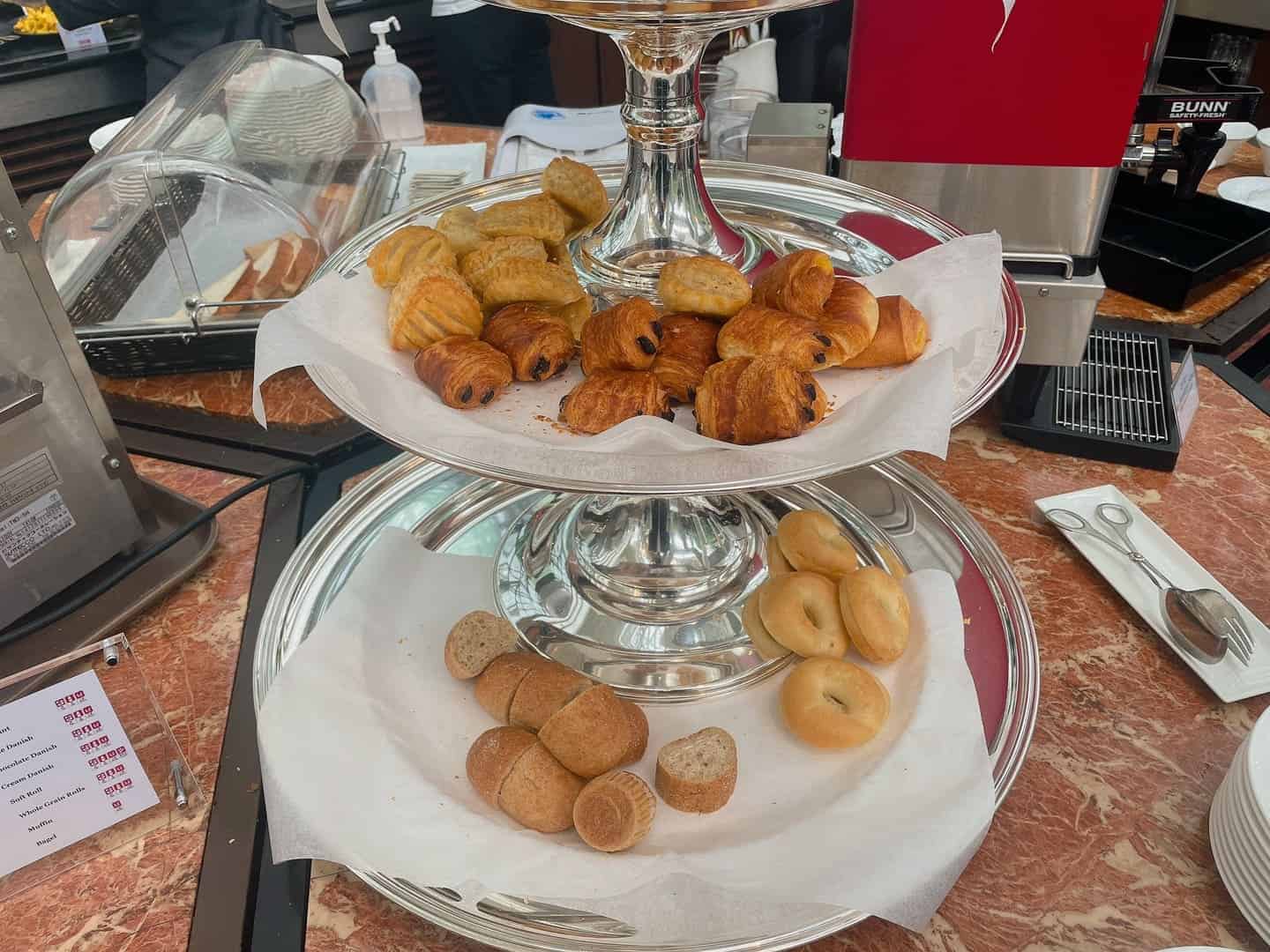 ホテル朝食の定番であるクロワッサンやパンオショコラといったデニッシュ系のパンから、アップルパイ、ベーグルなど。