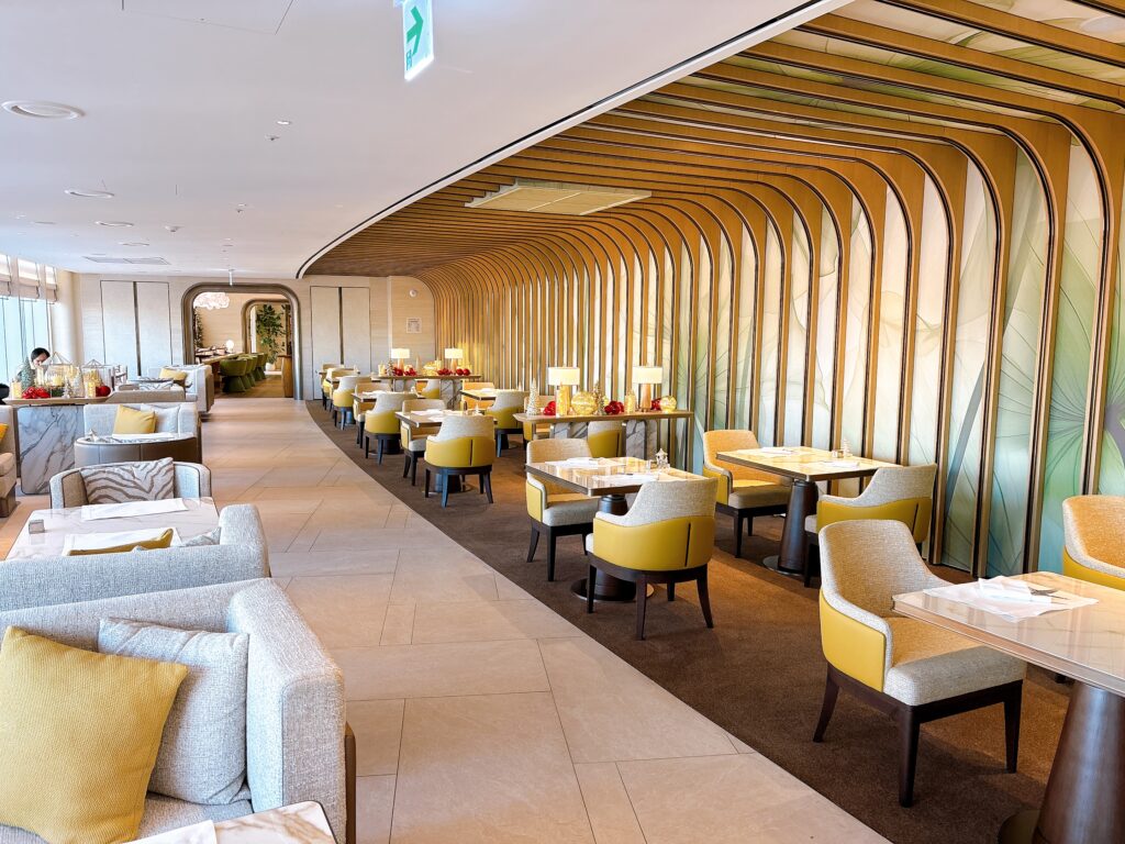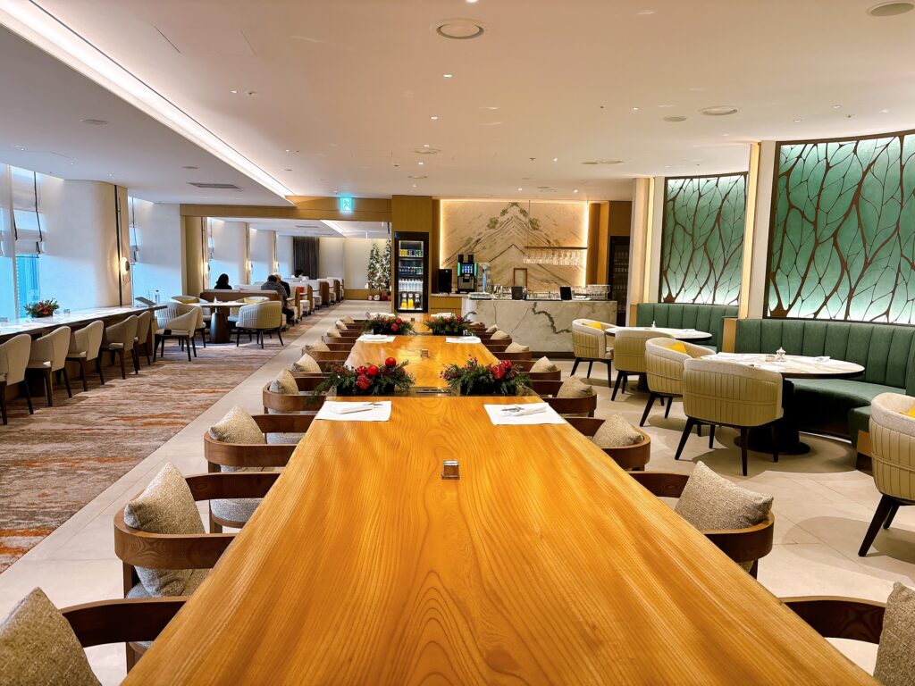 クラブラウンジ内には、カウンター席からソファ席など多種多様なテーブルが用意されています。