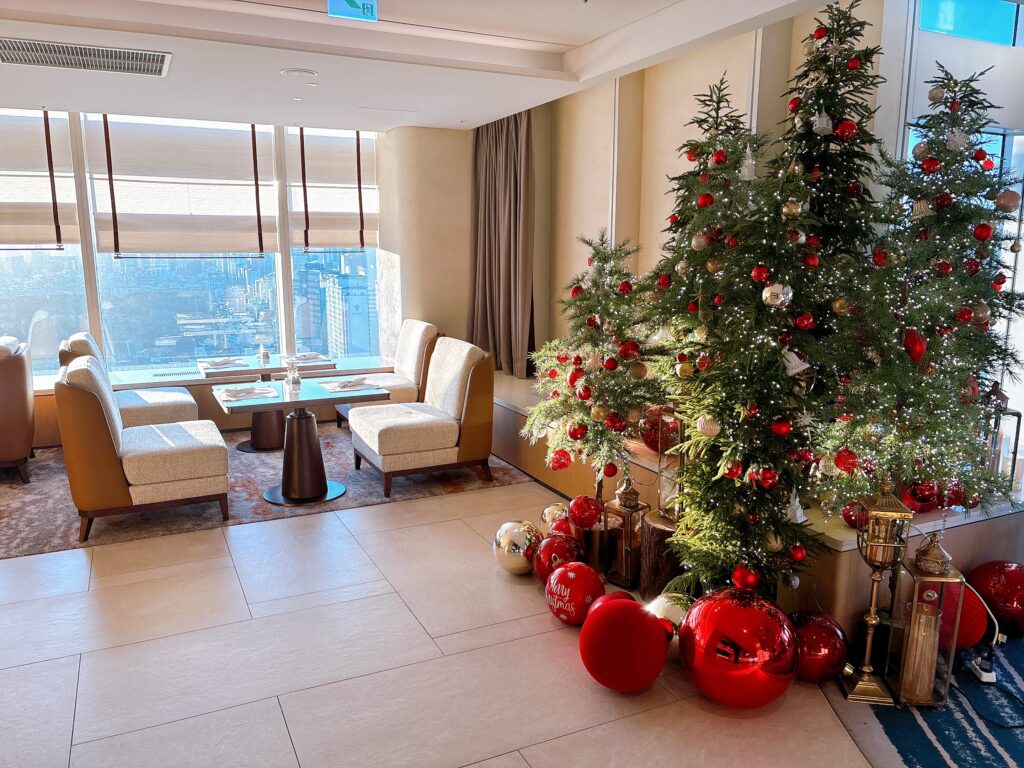 訪れたシーズンがクリスマスシーズンということもあり、ラウンジ内はクリスマスの装飾でホリデーシーズンを演出していました。