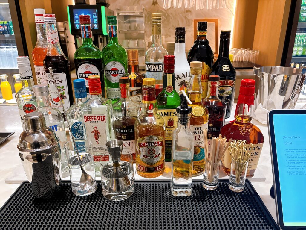韓国では2026年現在、ウイスキーブームであることからウイスキーを中心に充実したリキュール類のラインナップです。