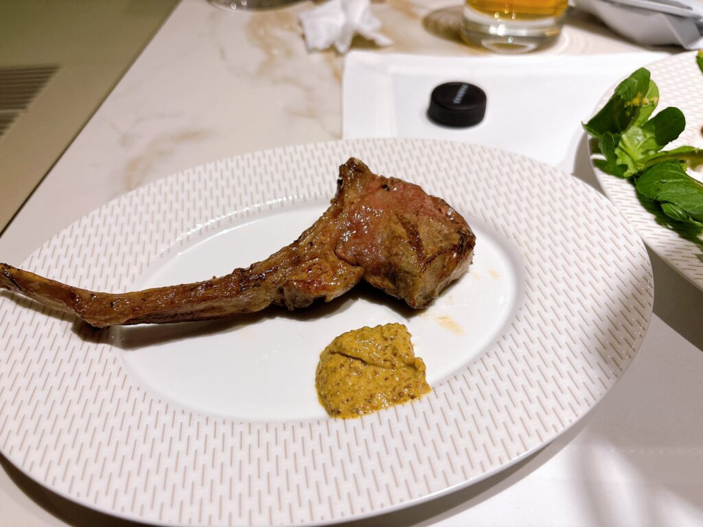 シェフの人が目の前で出来立てのラムチョップを提供してくれます。