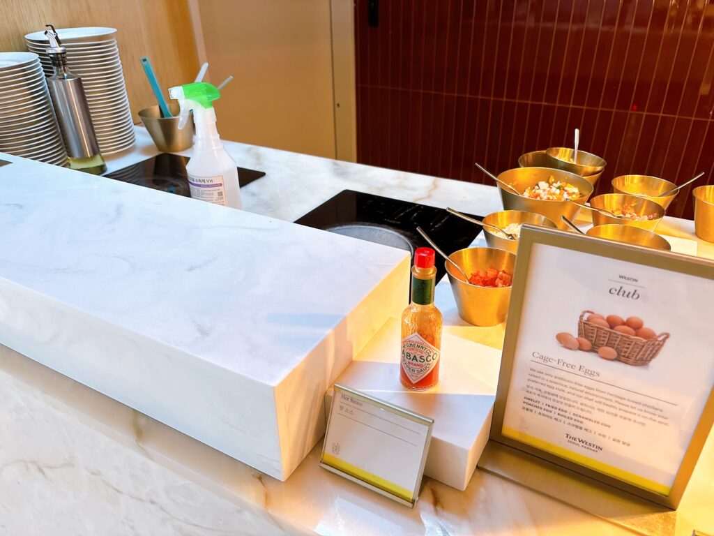 クラブラウンジの朝食のラインナップは1Fにあるレストラン施設での朝食と比較すると種類が少なく、韓国料理も限定的なので、色々な種類の韓国料理を楽しみたい人は1Fのレストラン施設で朝食を楽しむことをおすすめします。
