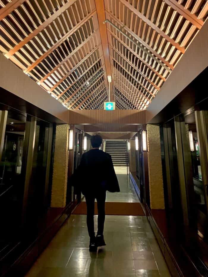 ホテルマンの出迎えはとくになく、自分で手荷物を持ってロビーに向かいます。