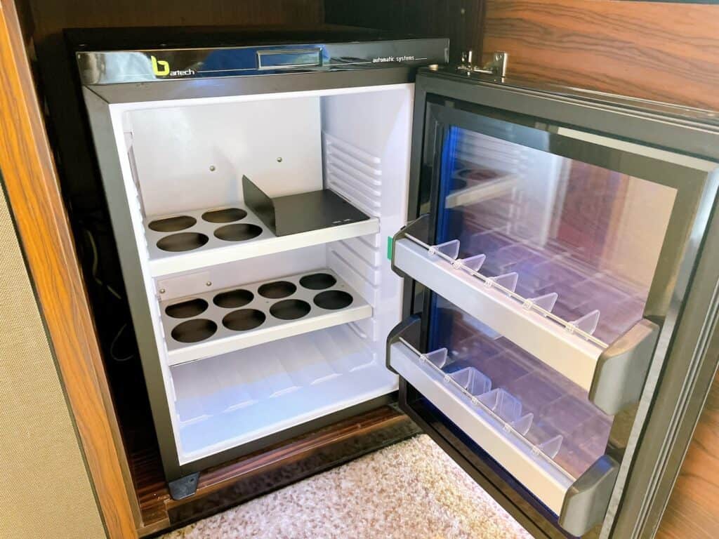 冷蔵庫の中にはフルーツやヨーグルトなどが冷蔵されています。