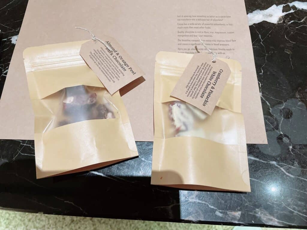 ターンダウンが終わると、机にミルクチョコレートとホワイトチョコレートが用意されていました。