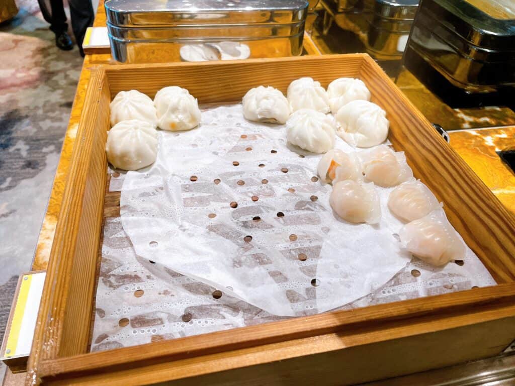 お隣には中華蒸し器もあり、蓋を開けてみると、肉まんやえび蒸し餃子などがありました!