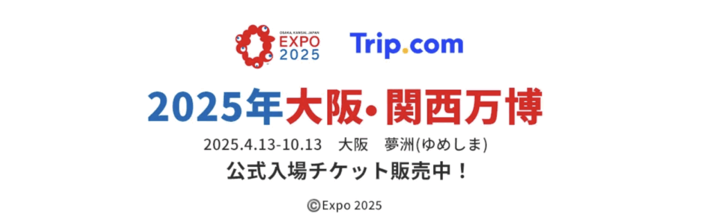 トリップドットコムでは大阪関西万博と提携しており、公式チケットをTrip.comの公式サイト内で購入できます。