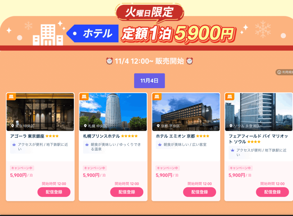 その他のホテルも特別価格で大放出されており、利用しなければ非常にもったいないです!