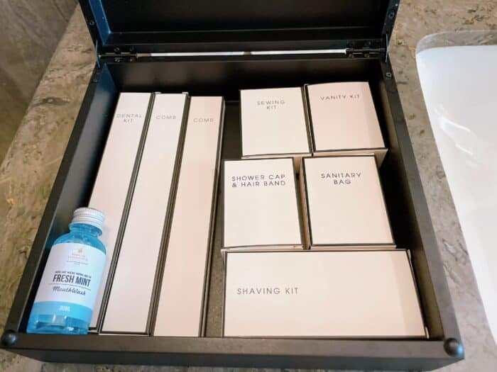 バスアメニティは箱に一つ一つ収納されています。