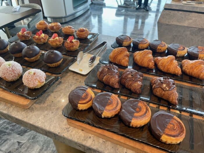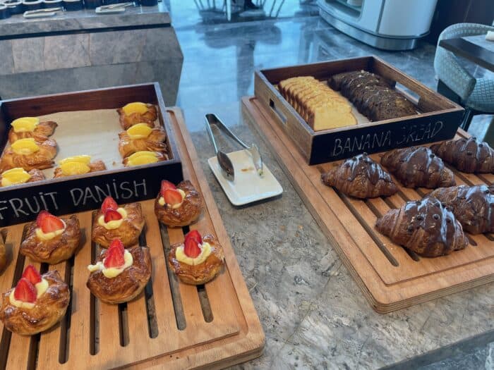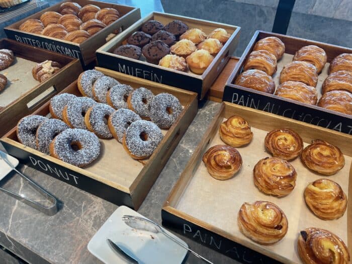 パンコーナーにはデニッシュ系のおいしそうなパンがずらり。
