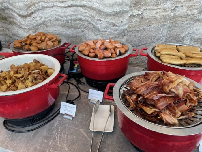 朝食の定番のソーセージにカリカリベーコン。