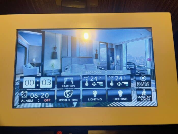 照明やエアコンの温度調節などはベッドサイドのタッチパネルで行えます。